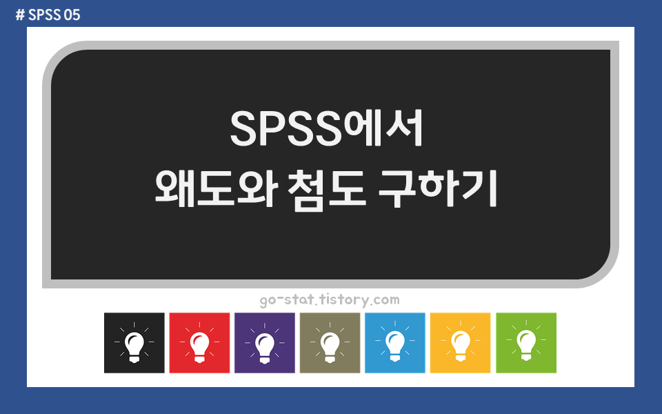 SPSS에서 분석에 사용할 자료가 정규분포를 이루고 있는지 검증하기 위한 하나의 방법으로 왜도와 첨도를 확인하곤 한다. 왜도와 첨도를 구하는 방법은 어렵지 않다. 다소 오래된 방법이기는 하지만, 꽤 많은 논문에서 변수의 자료가 정규분포를 이루는지 알기 위한 지표로 왜도와 첨도를 제시한다.