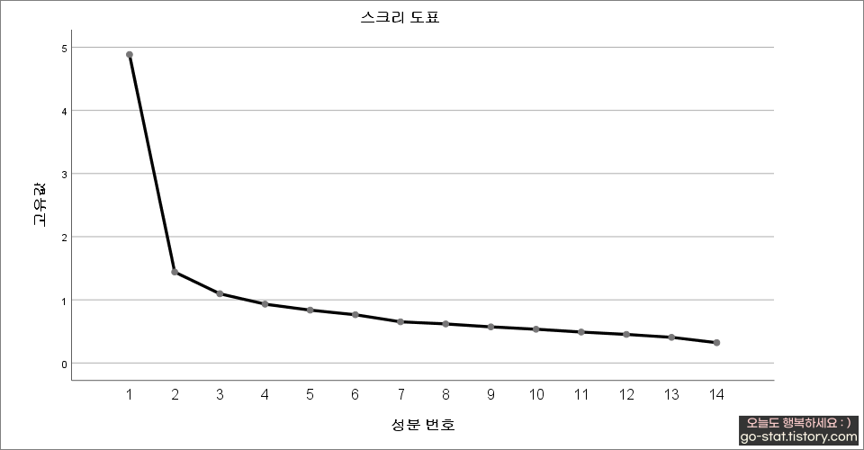 다음은 스크리도표이다. 논문에 제시하지 않지만, 점을 기준으로 요인이 묶이고 있구나~ 하면서 참고용으로 확인하고 넘어간다.